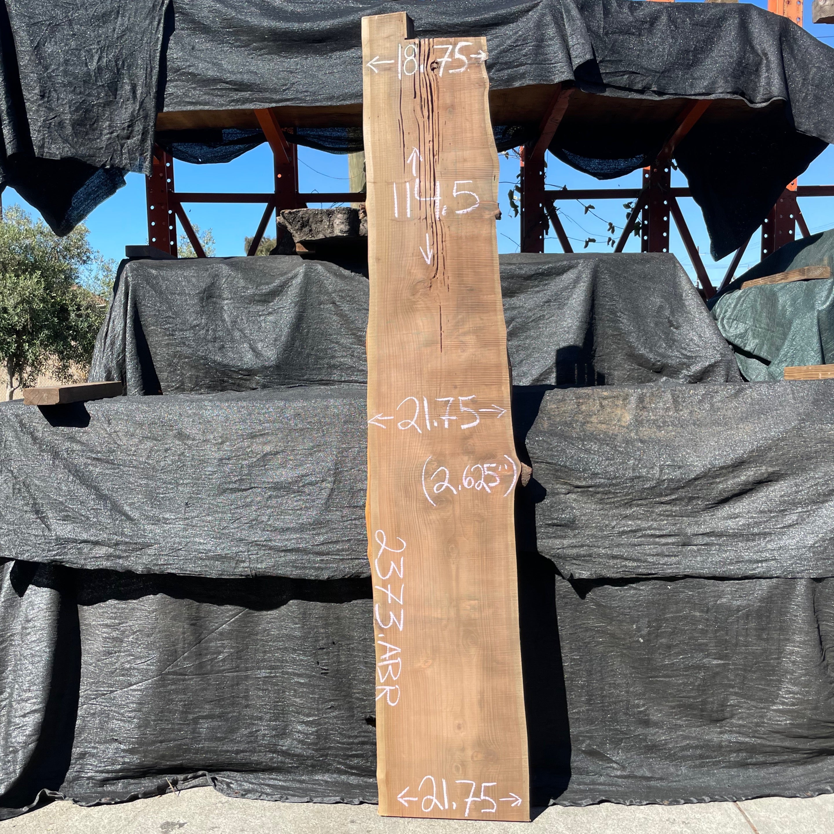 Redwood slab from Peroba Reclaimed measuring 2.625" thick x 18.75"-21.75"-21.75" wide x 114.5" long