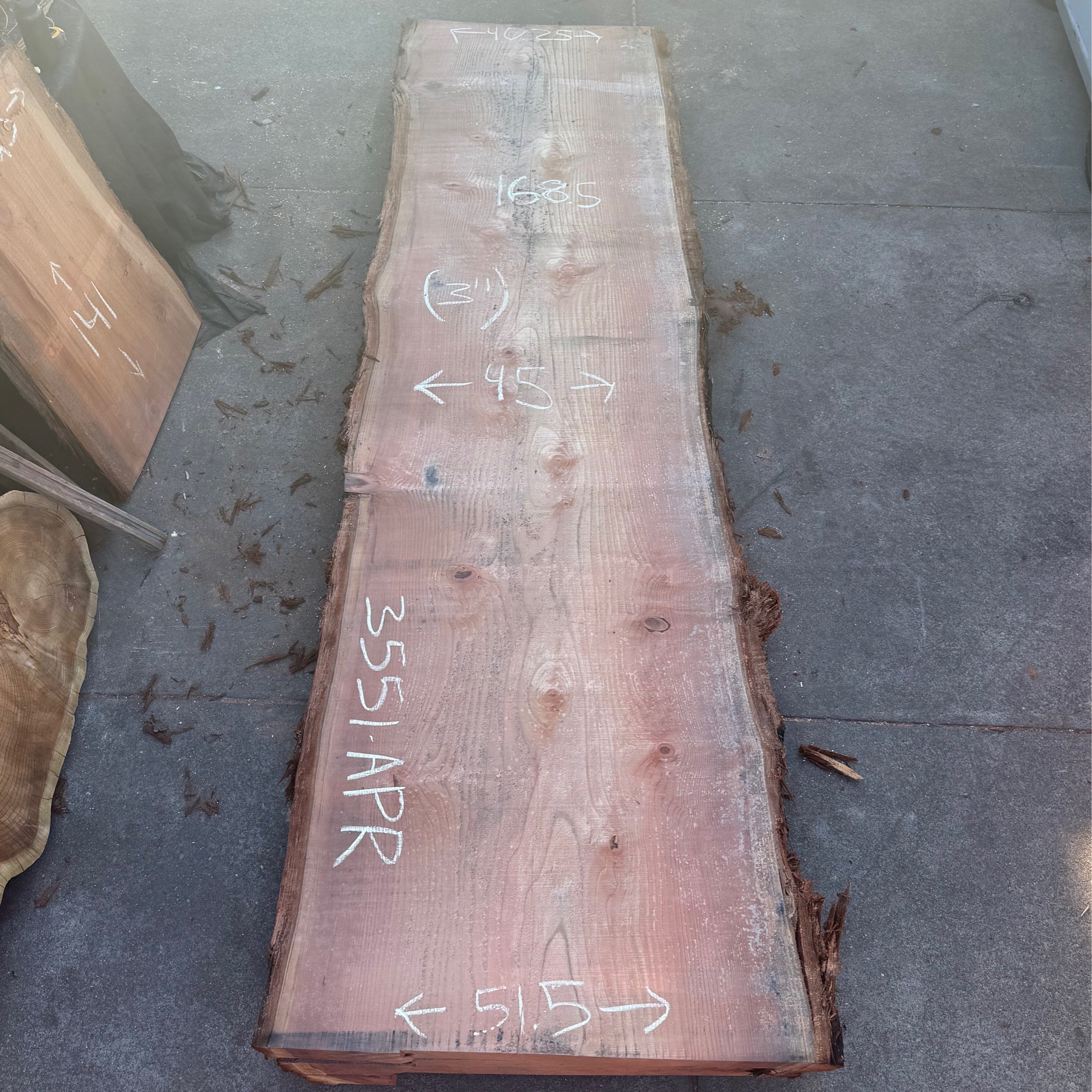 Redwood slab from Peroba Reclaimed measuring 3" thick x 40.25"-45"-51.5" wide x 168.5" long