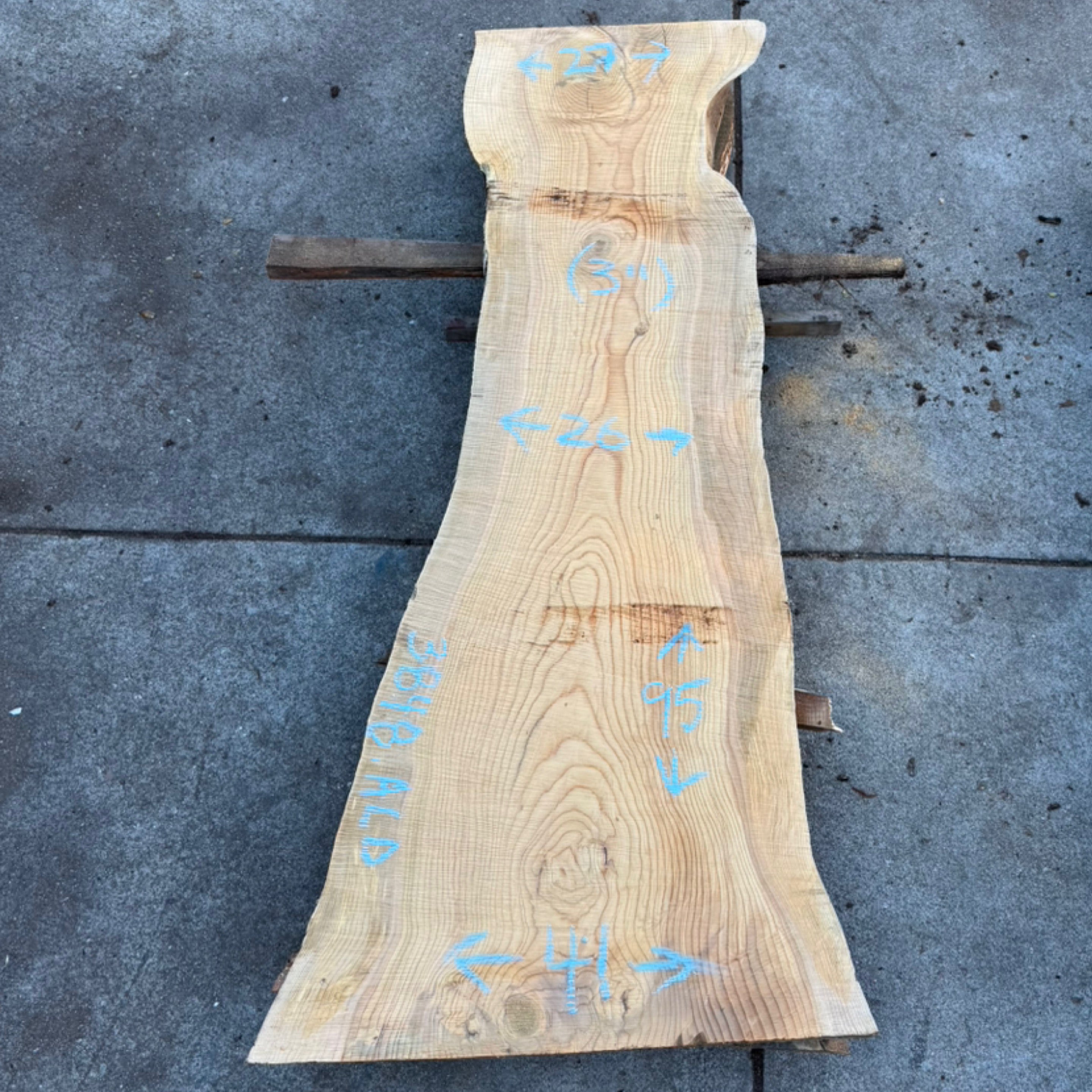 Cedar slab from Peroba Reclaimed measuring 3" thick x 27"-26"-41" wide x 95" long