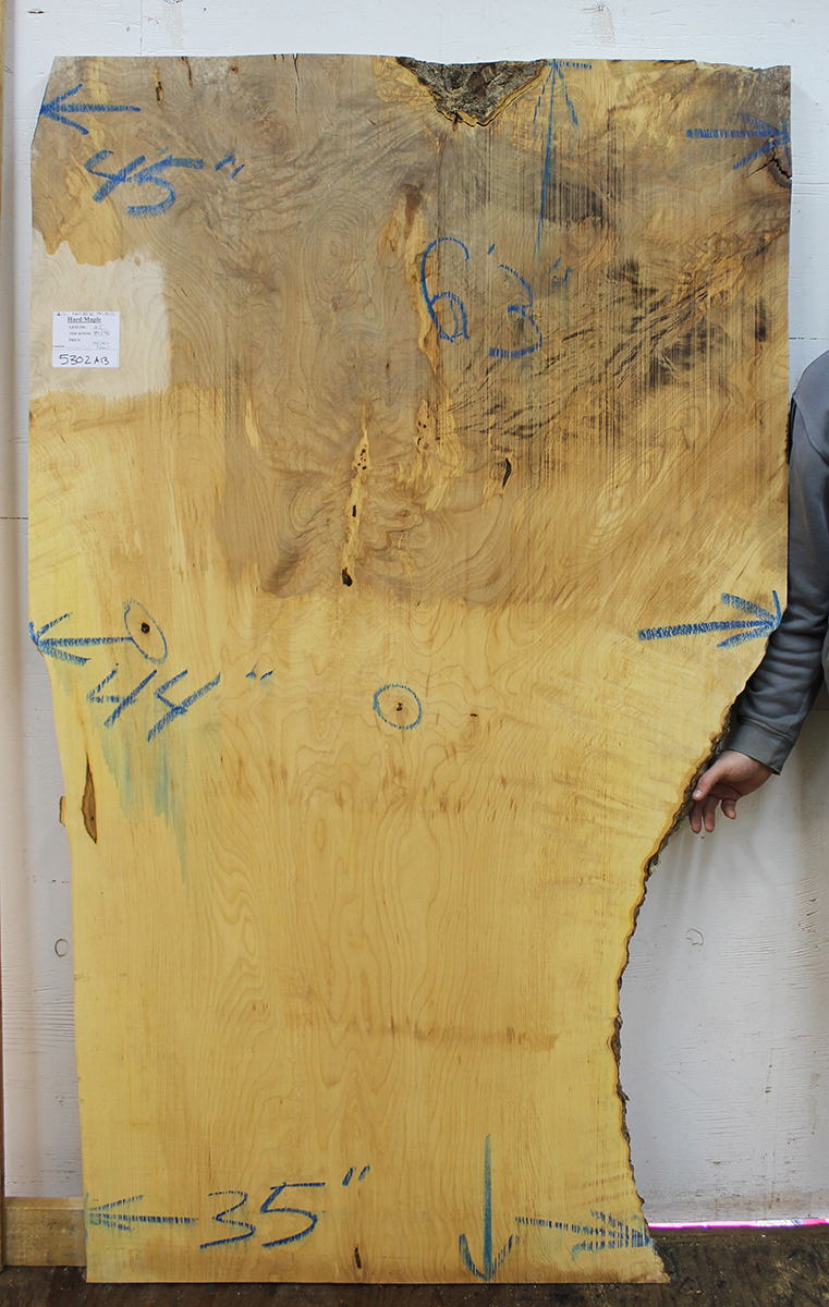 Maple (Big Leaf) slab from Berkshire Products measuring 1-5/8" thick x 35"-37"-36" wide x 5' 9" long