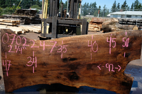 Black Walnut slab from Goby Walnut measuring 22.75" thick x 61"-54"-46"-50" wide x 78" long
