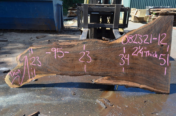Black Walnut slab from Goby Walnut measuring 2.25" thick x 23"-23"-34"-51" wide x 95" long