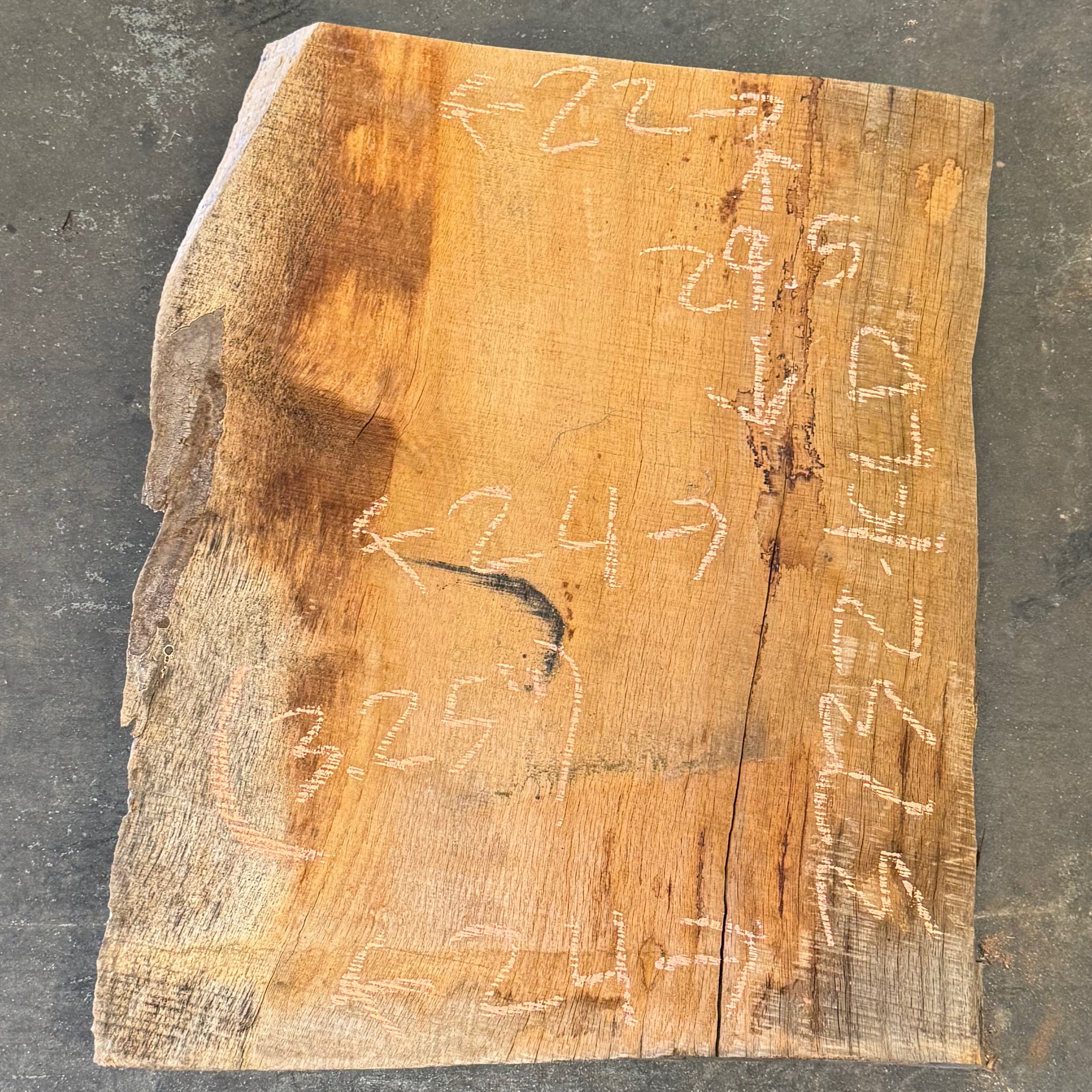 Oak slab from Peroba Reclaimed measuring 3.25" thick x 22"-24"-24" wide x 29.5" long