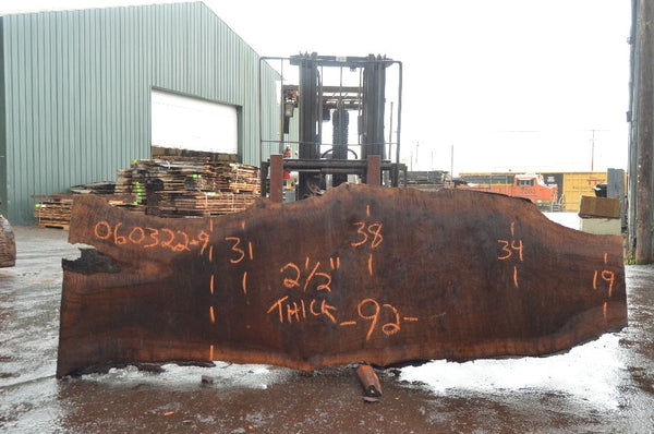 Black Walnut slab from Goby Walnut measuring 2.5" thick x 31"-38"-34"-19" wide x 92" long