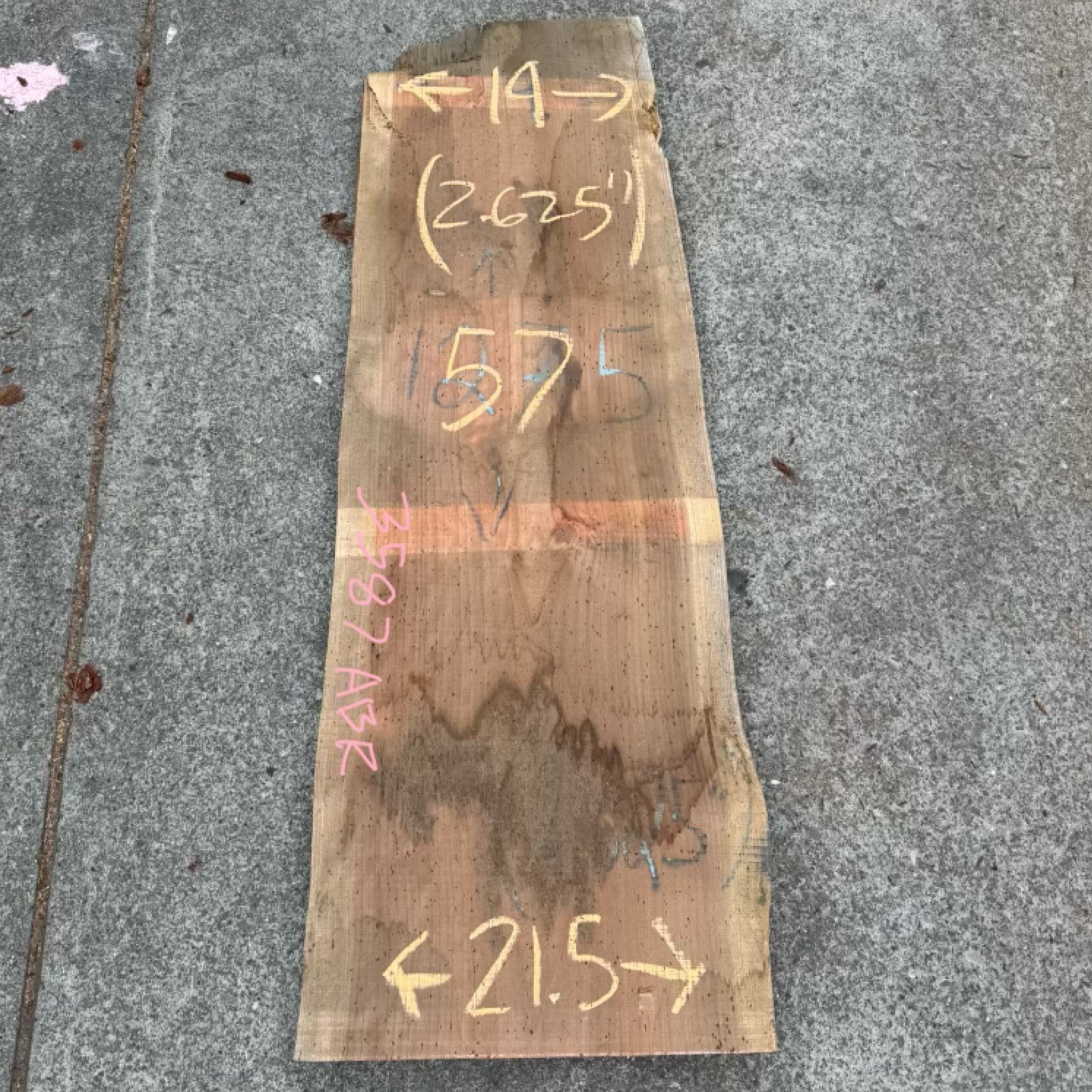 Redwood slab from Peroba Reclaimed measuring 2.625" thick x 19"-21.5" wide x 57" long