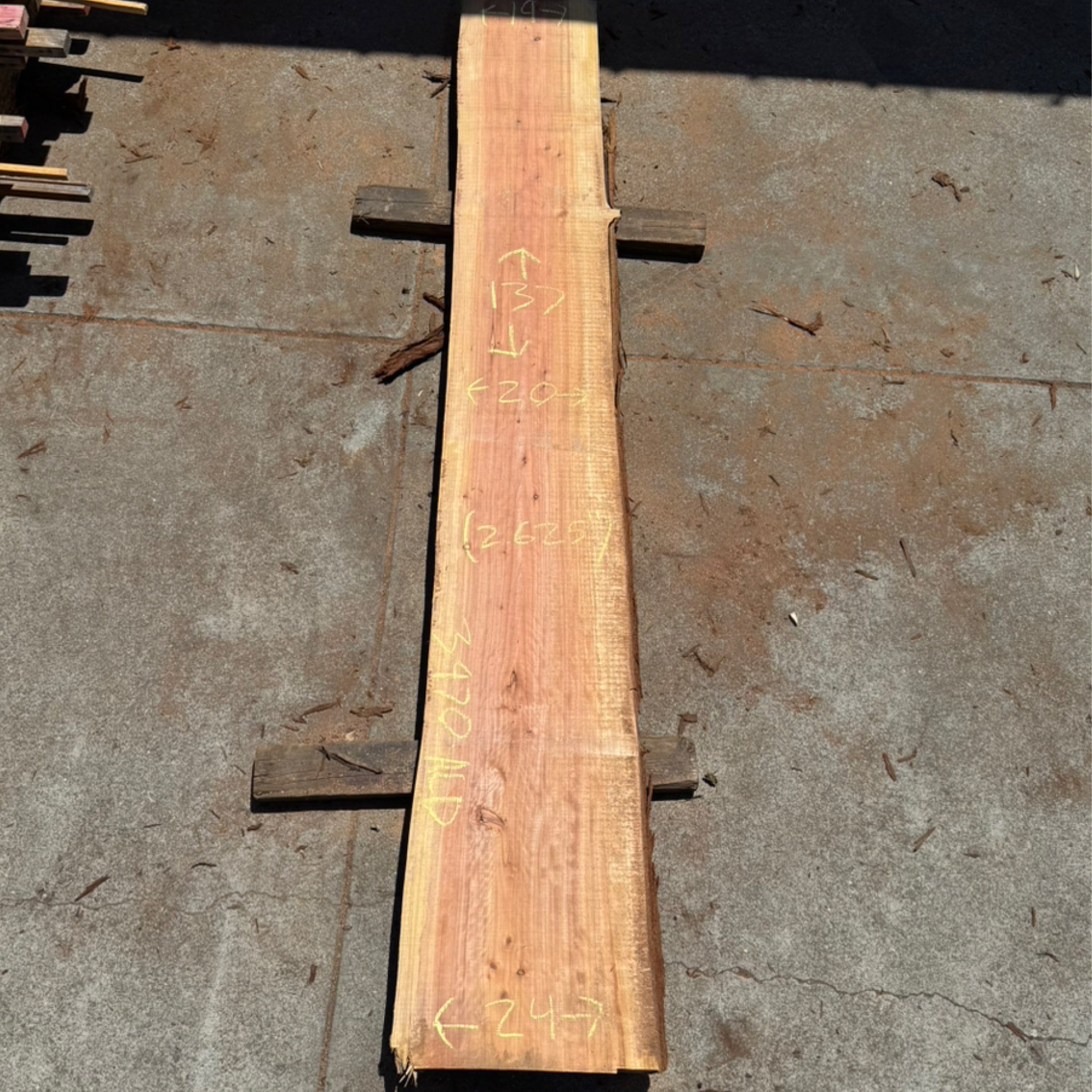 Redwood slab from Peroba Reclaimed measuring 2.625" thick x 19"-20"-24" wide x 137" long