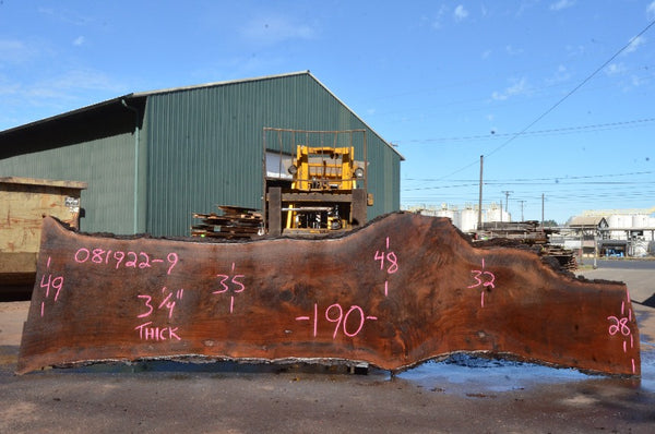 Lyptus slab from GL Veneer measuring 3" thick x 25"-36" wide x 73"-84" long