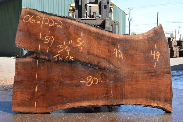 Black Walnut slab from Goby Walnut measuring 3.25" thick x 59"-50"-42"-49" wide x 80" long