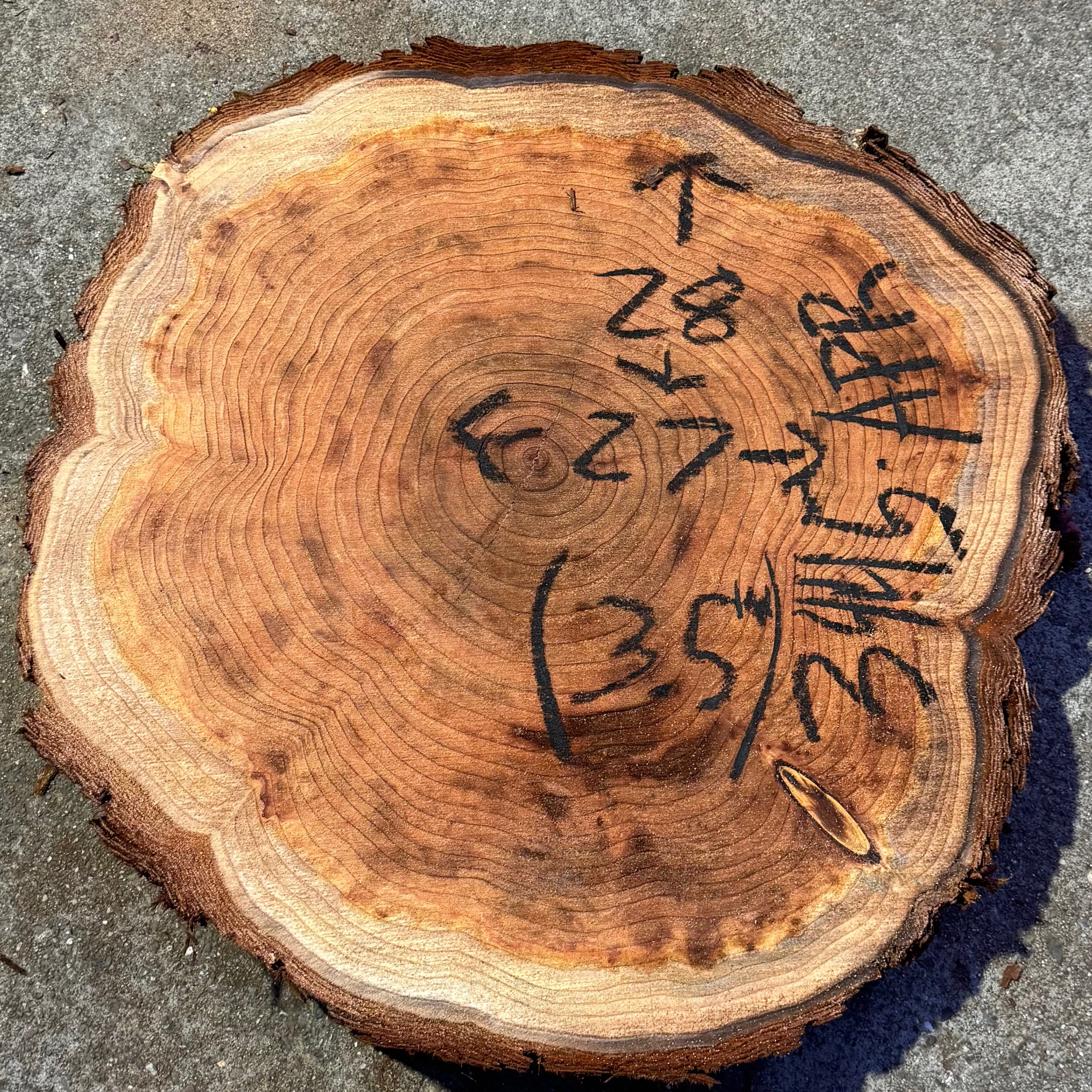 Redwood slab from Peroba Reclaimed measuring 3.5" thick x 27" wide x 28" long