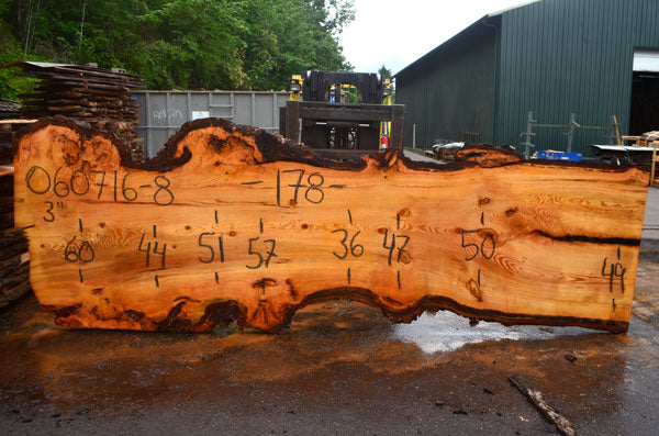 Fir slab from Goby Walnut measuring 3" thick x 60"-44"-51"-57"-36"-47"-50"-49" wide x 178" long