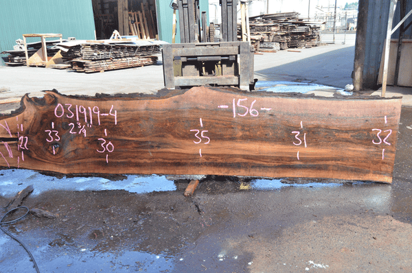 Black Walnut slab from Goby Walnut measuring 2.75" thick x 22"-33"-30"-35"-31"-32" wide x 156" long