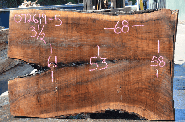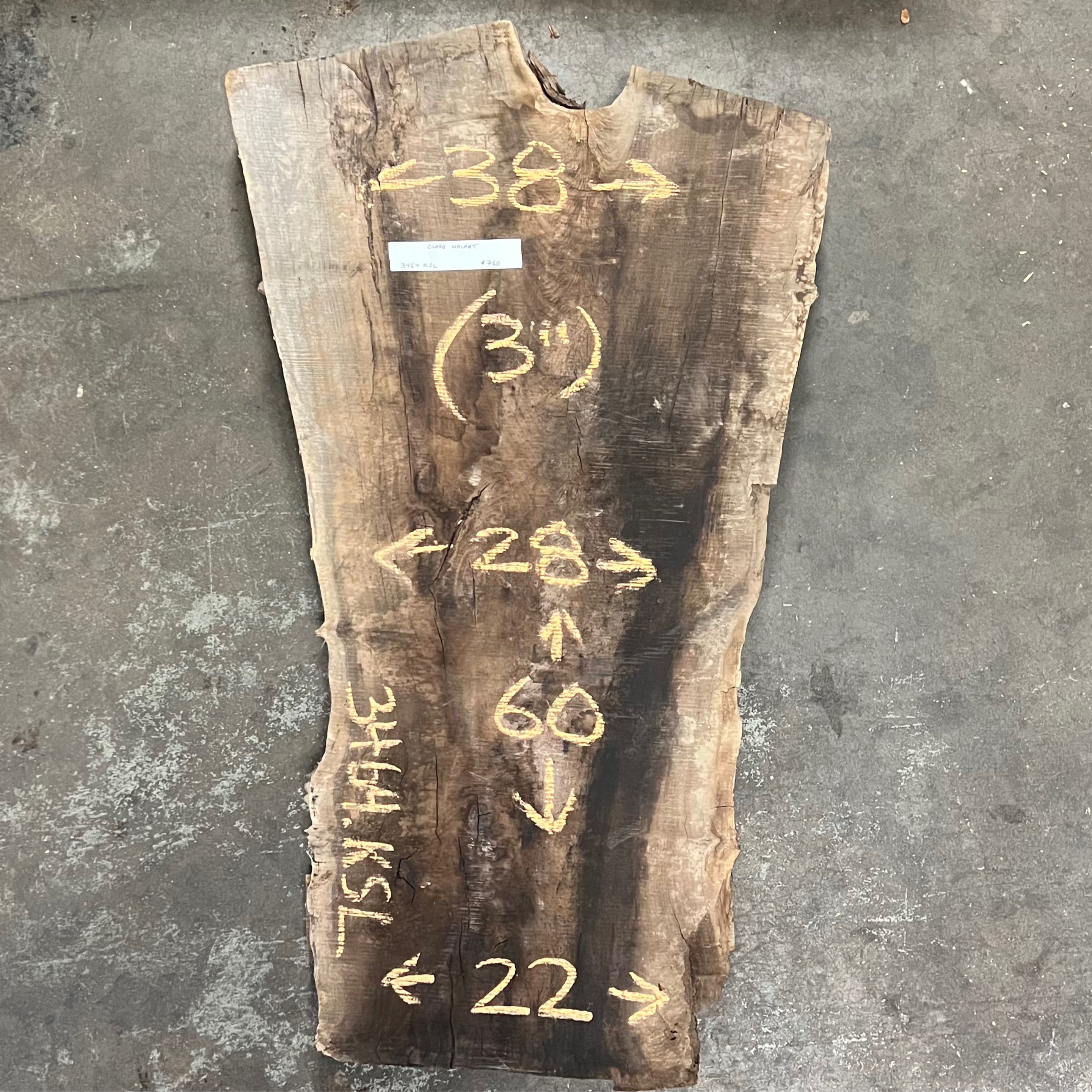 Black Walnut slab from Goby Walnut measuring 3.5" thick x 61"-53"-58" wide x 79" long