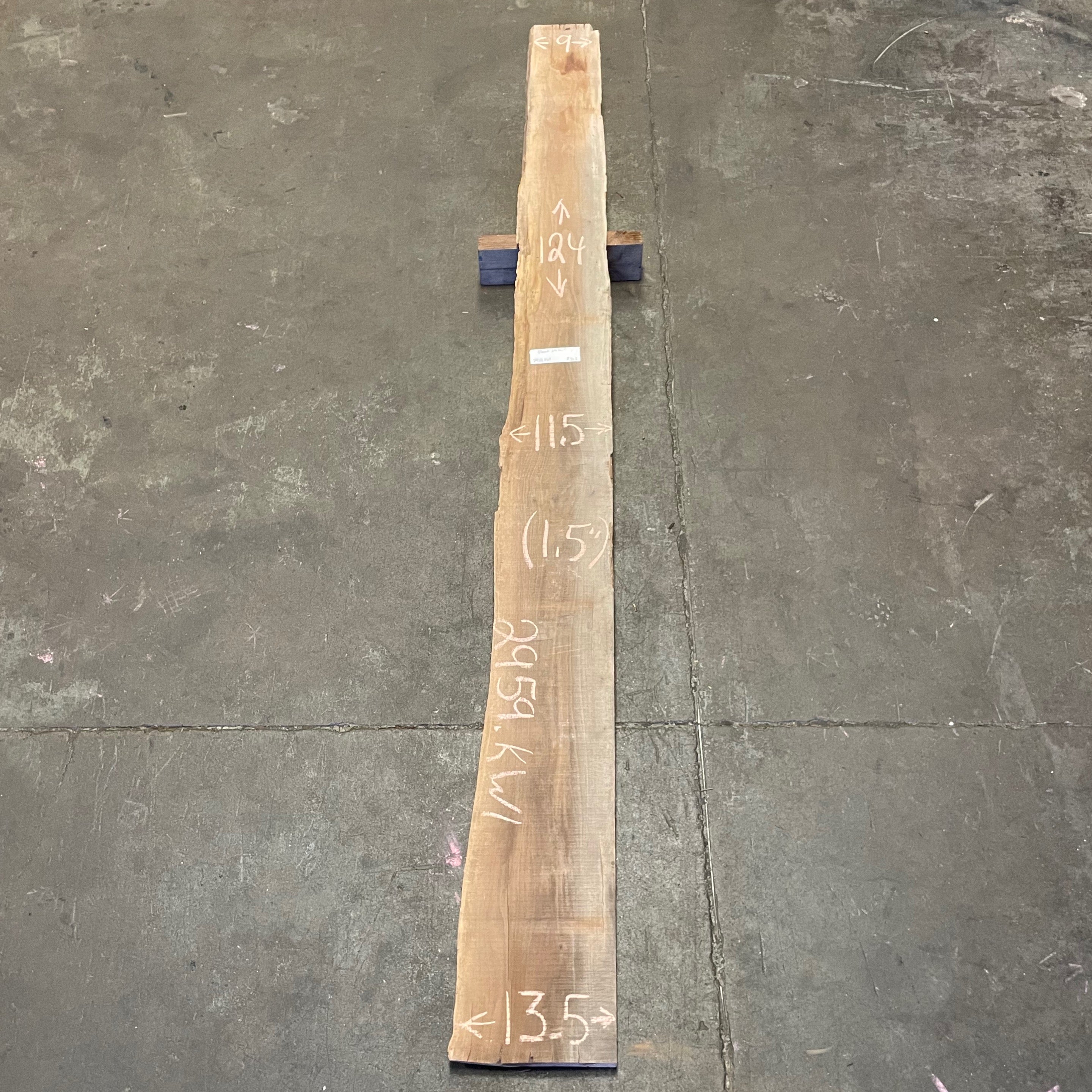 Black Walnut slab from Peroba Reclaimed measuring 1.5" thick x 9"-11.5"-13.5" wide x 124" long