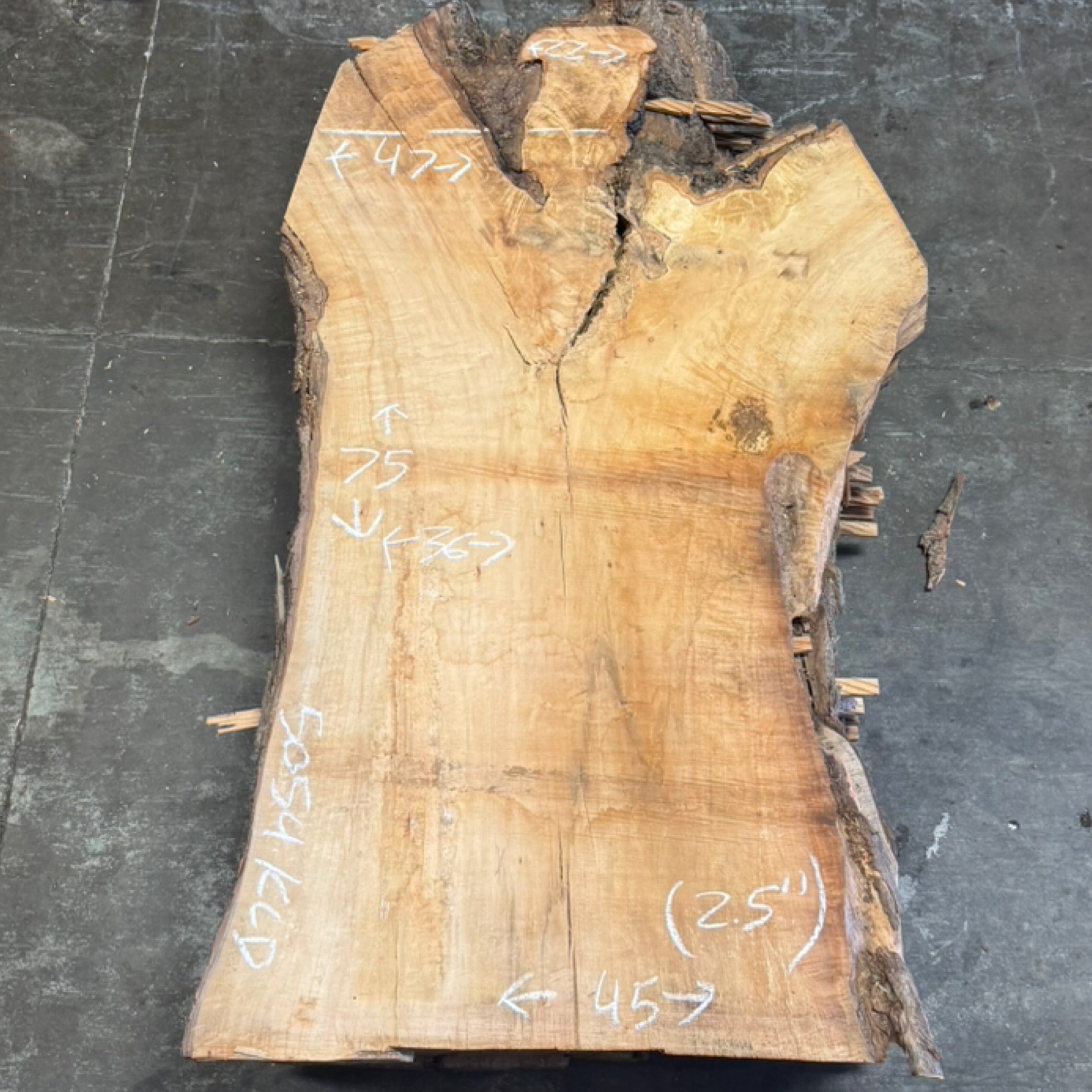 Maple slab from Goby Walnut measuring 3.125" thick x 38"-33"-41"-30"-23"-38" wide x 172" long