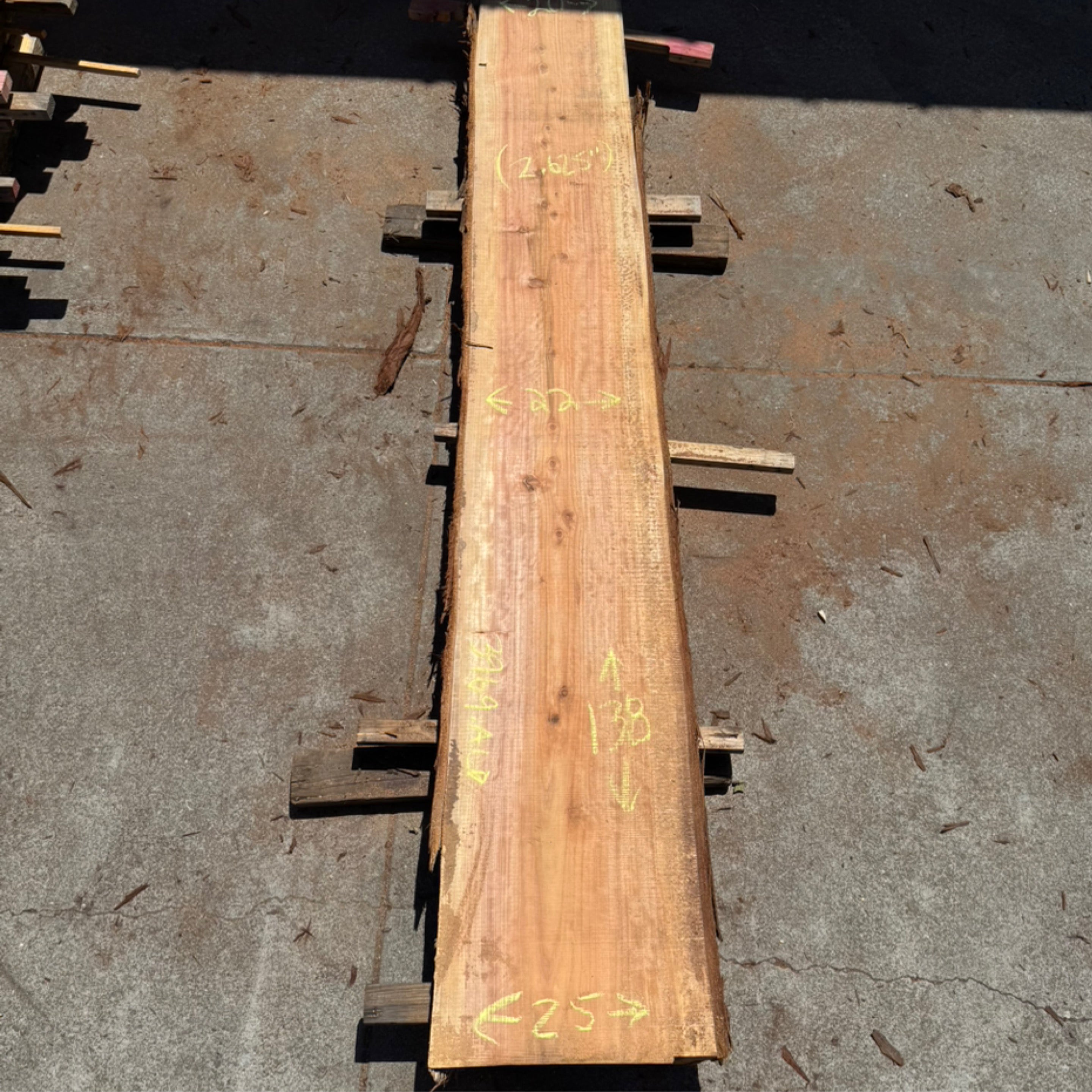 Redwood slab from Peroba Reclaimed measuring 2.625" thick x 20"-22"-25" wide x 138" long