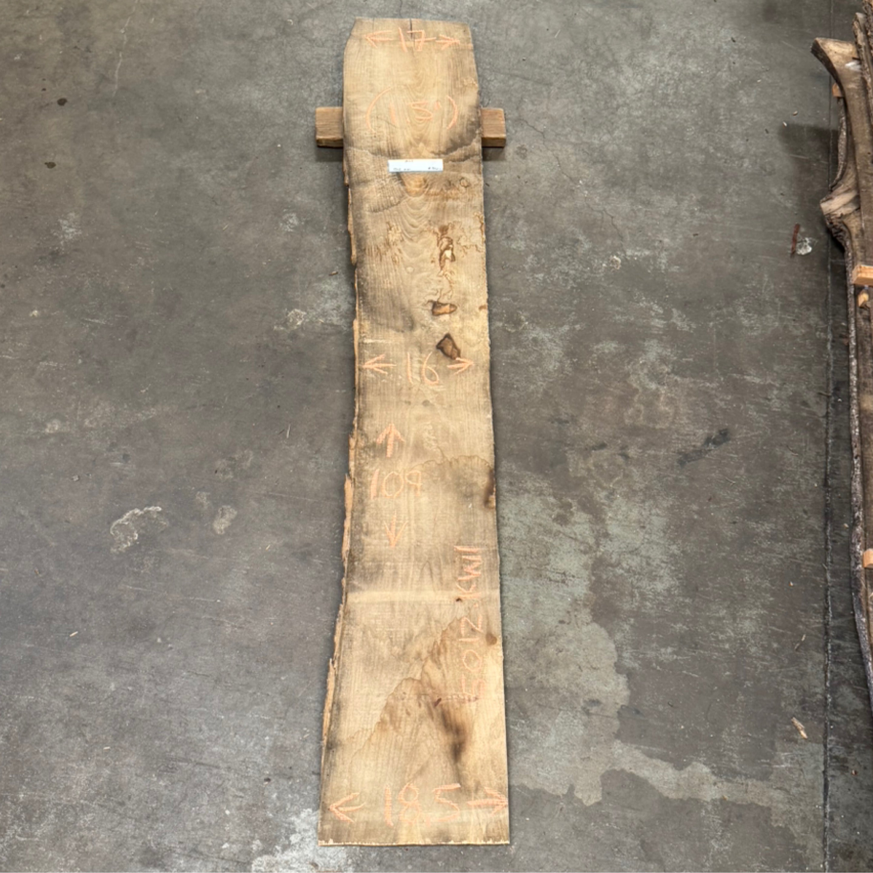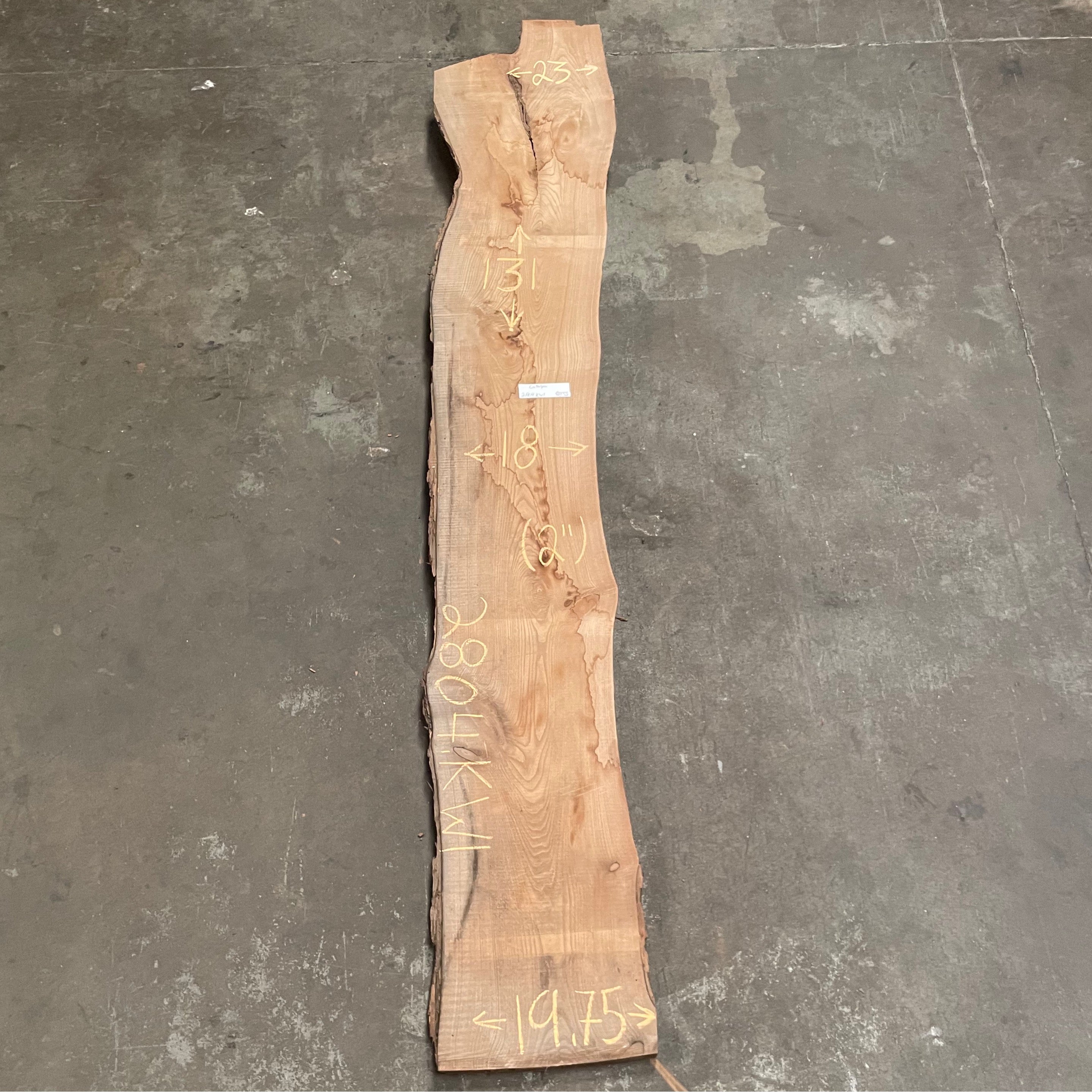 Ash slab from Peroba Reclaimed measuring 1.5" thick x 17"-16"-18.5" wide x 109" long