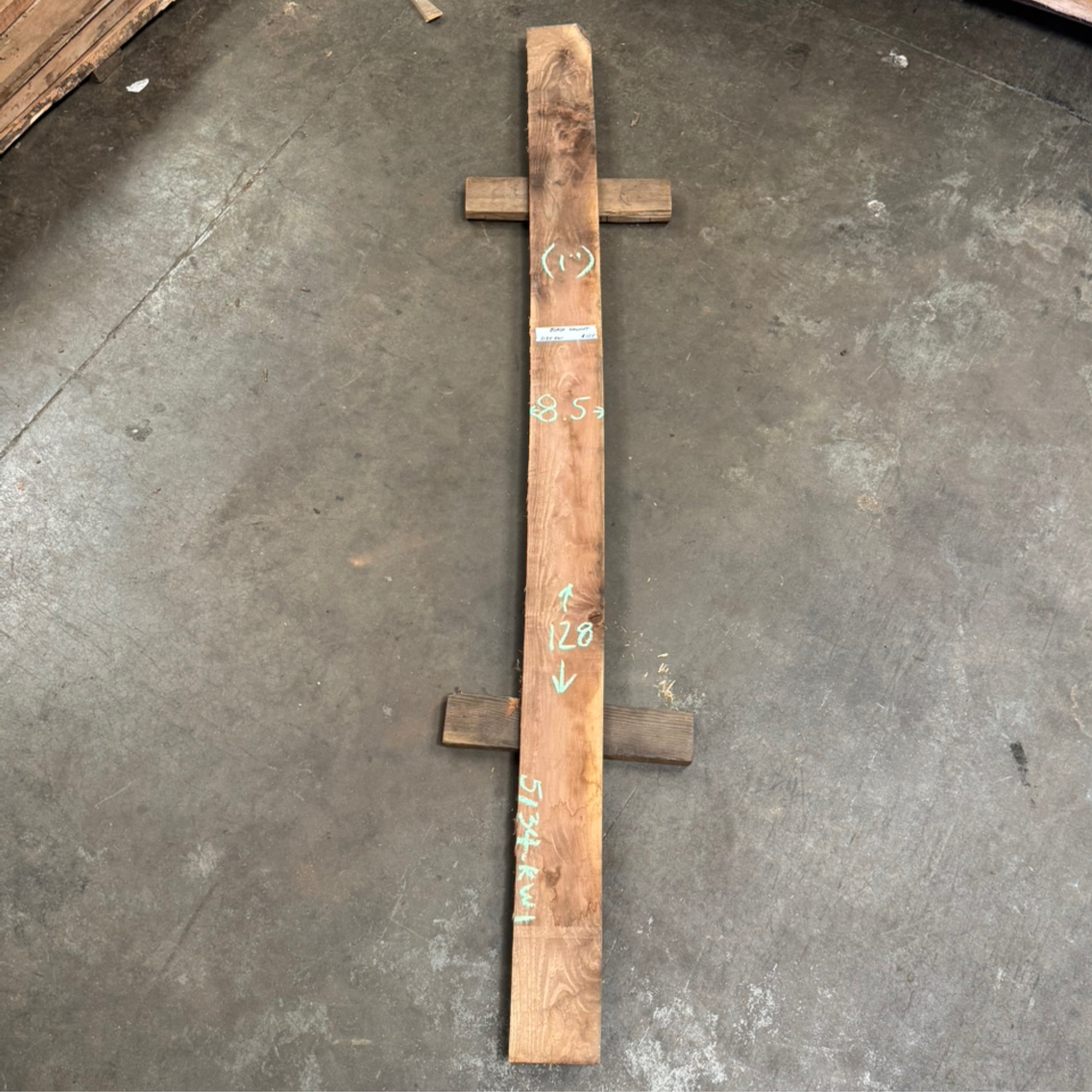 Black Walnut slab from Peroba Reclaimed measuring 1" thick x 8.5" wide x 128" long