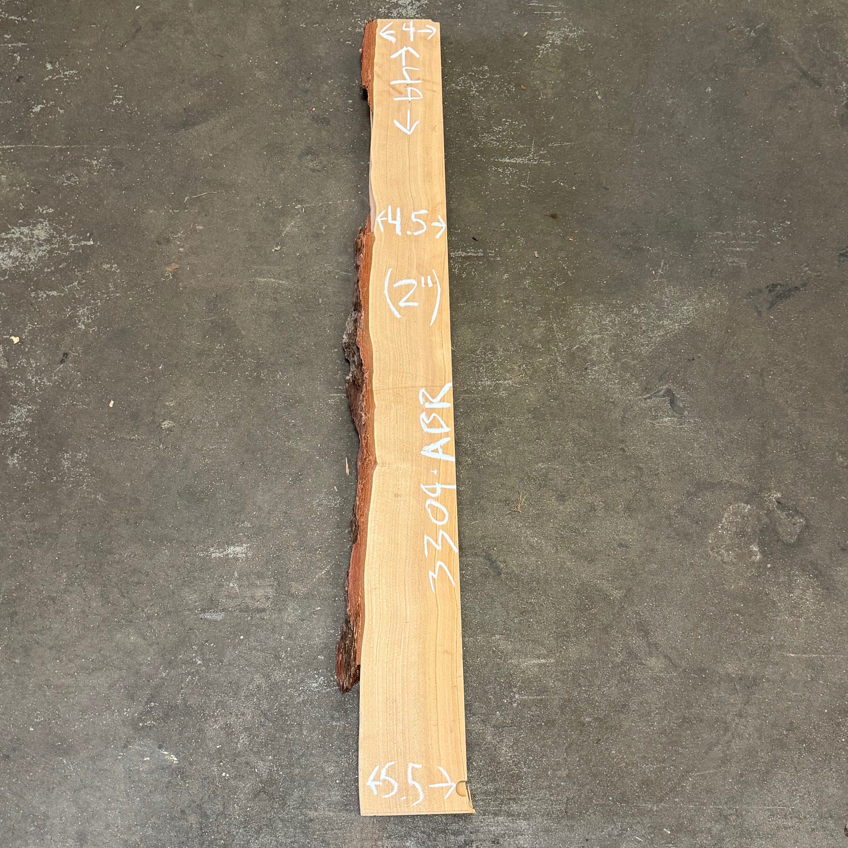 Cedar slab from Peroba Reclaimed measuring 2" thick x 4"-4.5"-5.5" wide x 49" long