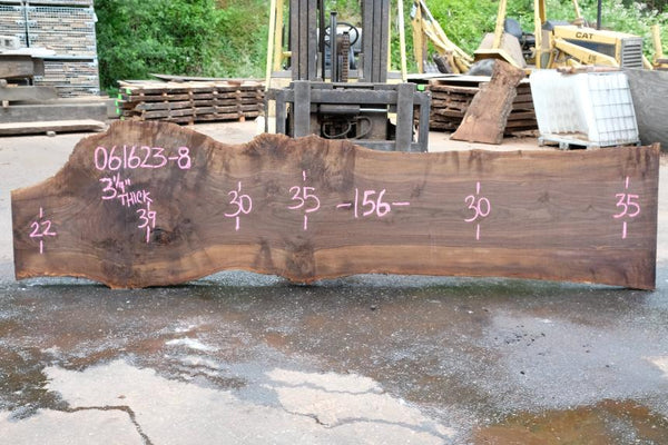 Bastogne Walnut slab from Goby Walnut measuring 3.25" thick x 22"-39"-30"-35"-30"-35" wide x 156" long
