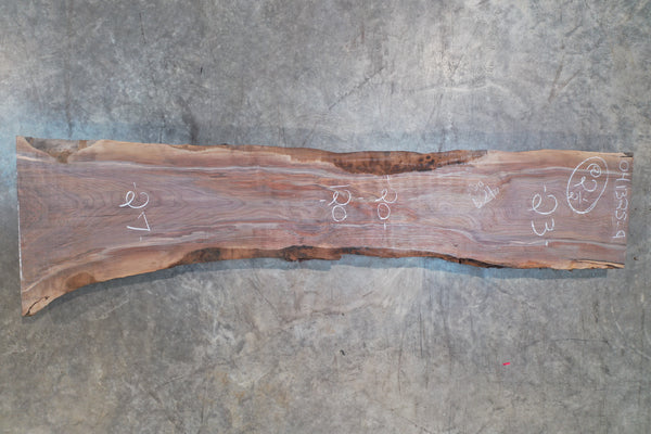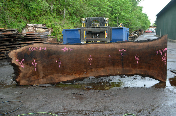 Black Walnut slab from Goby Walnut measuring 3.25" thick x 47"-43"-37"-36"-58" wide x 190" long