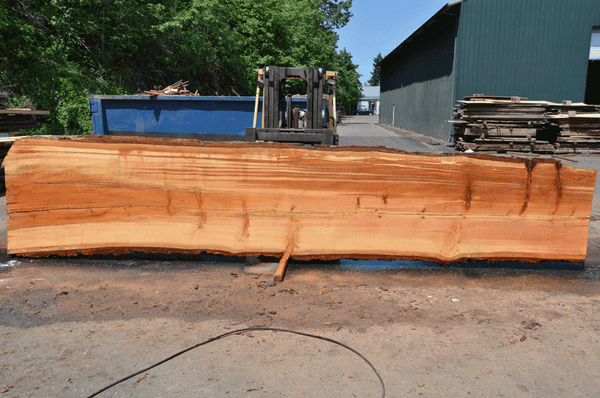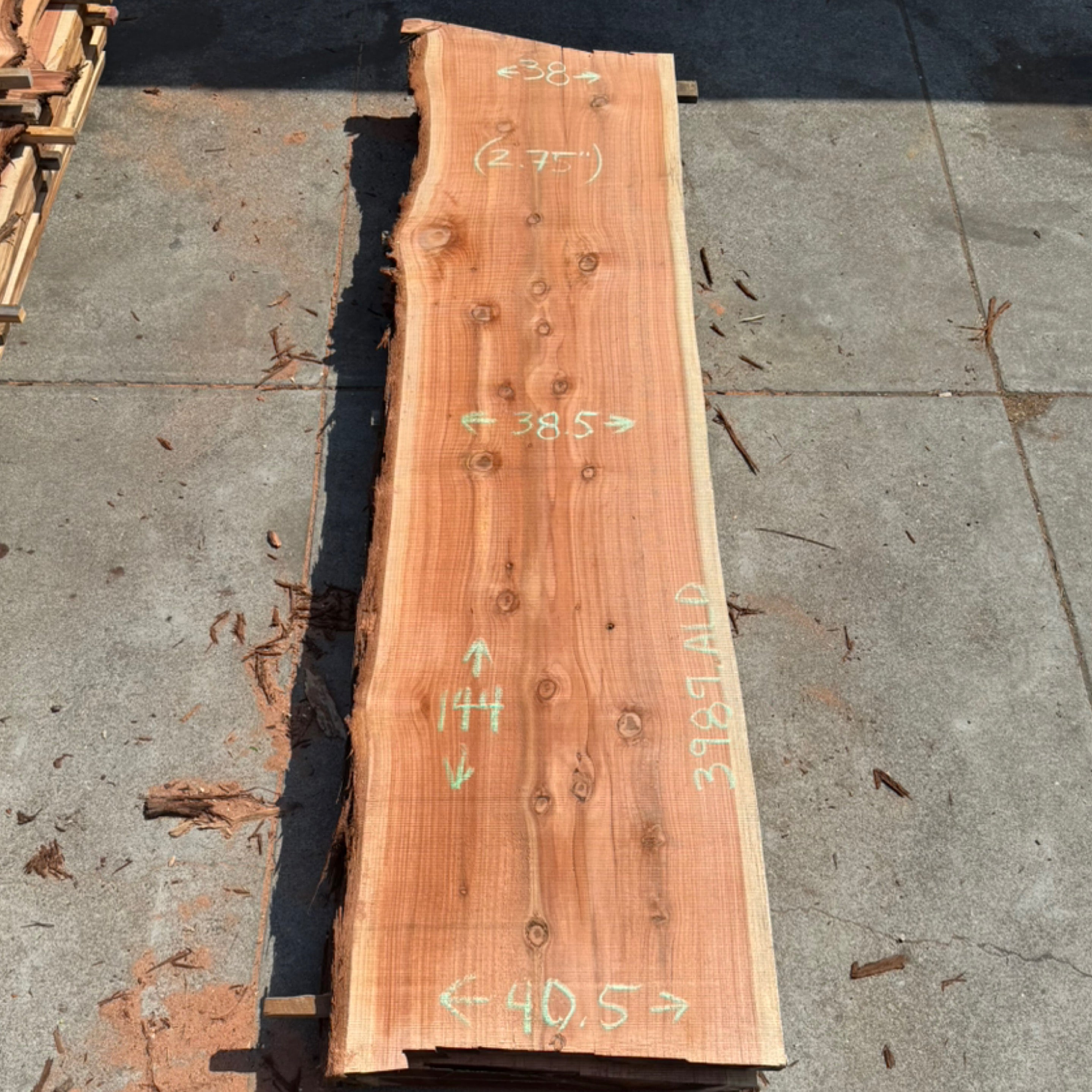Redwood slab from Peroba Reclaimed measuring 2.75" thick x 38"-38.5"-40.5" wide x 144" long