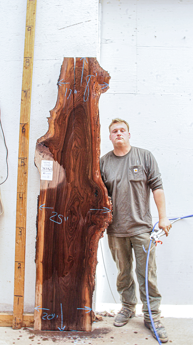 Claro Walnut slab from Berkshire Products measuring 1-3/4" thick x 17"-25"-20" wide x 8' long