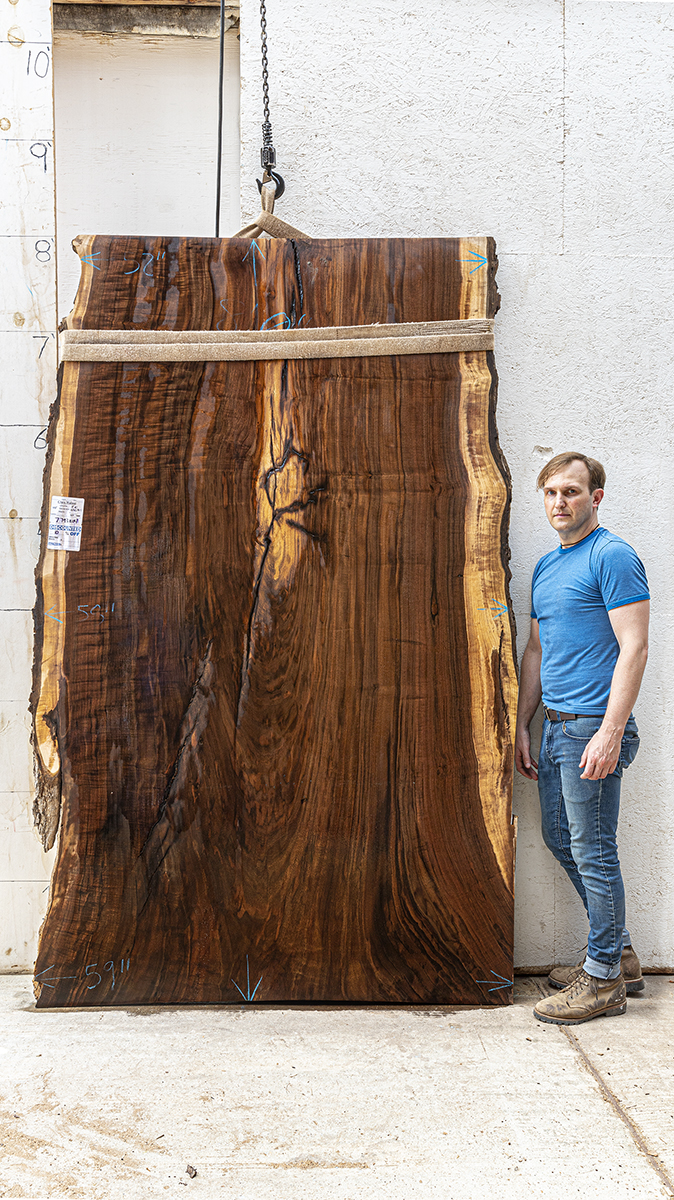 Claro Walnut slab from Hunski Hardwoods measuring 2.75" thick x 50" wide x 57" long