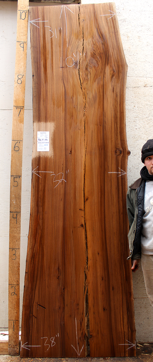English Elm slab from Berkshire Products measuring 1-3/4" thick x 34"-23"-26" wide x 10' 3" long