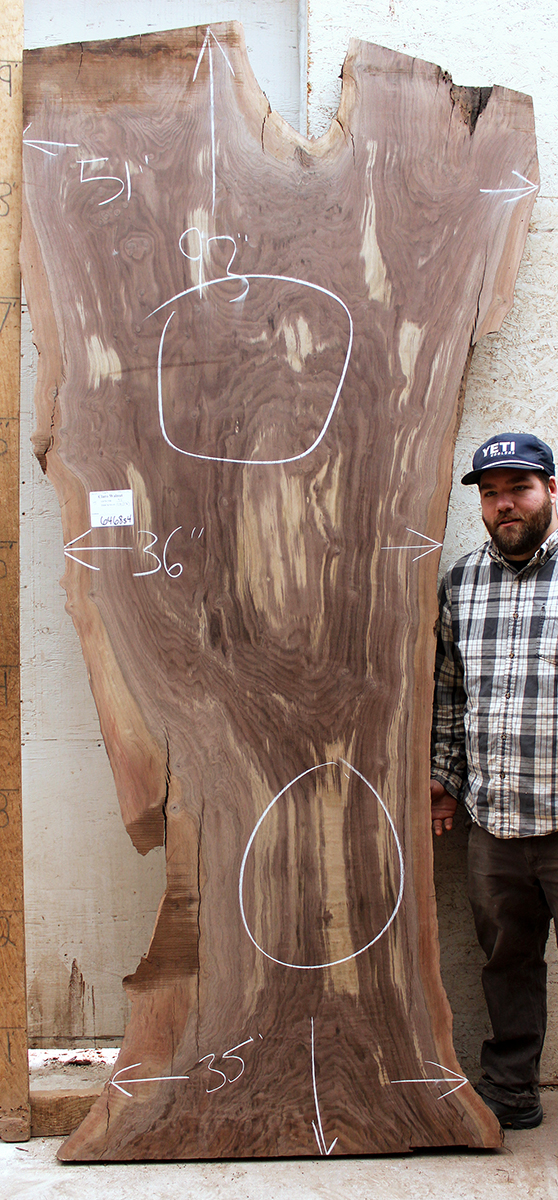 Claro Walnut slab from Berkshire Products measuring 2-5/8" thick x 51"-36"-35" wide x 9' 3" long