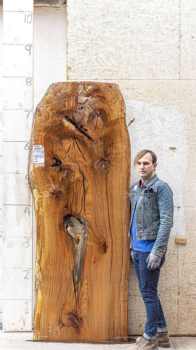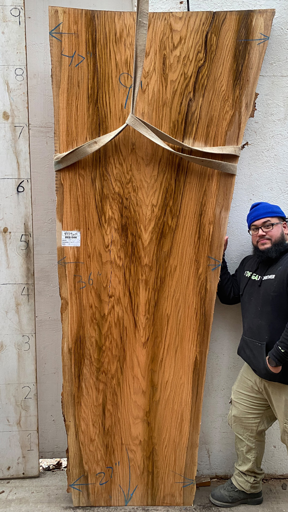 Red Oak slab from Berkshire Products measuring 2" thick x 47"-36"-27" wide x 9' long