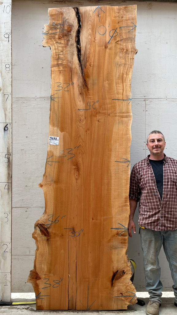 English Elm slab from Berkshire Products measuring 2" thick x 31"-32"-38" wide x 10' 1" long