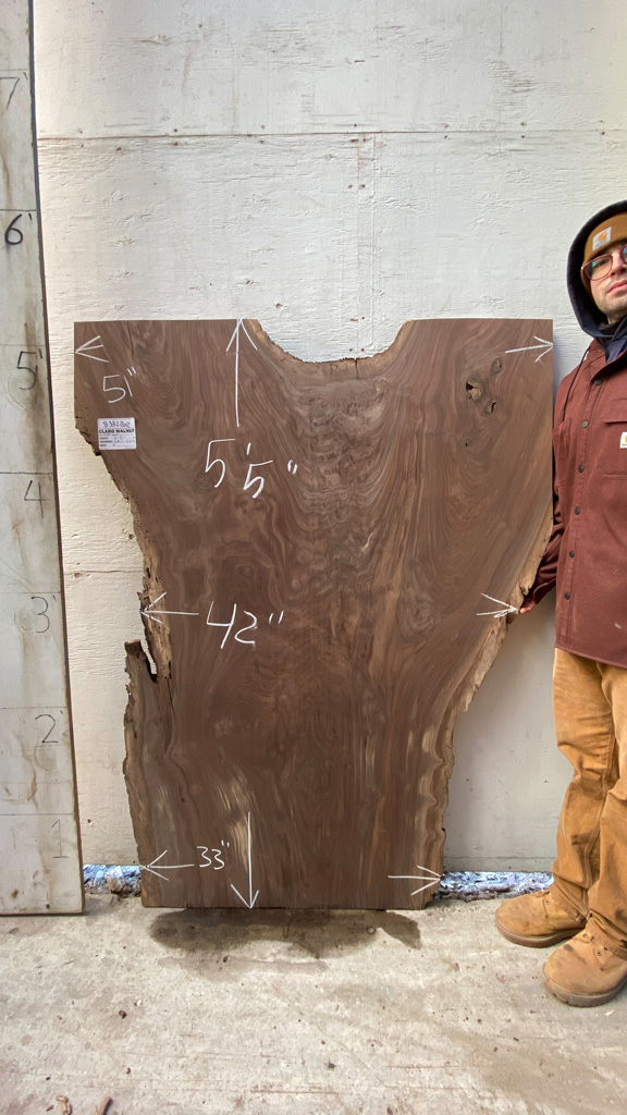 Claro Walnut slab from Berkshire Products measuring 1-3/4" thick x 51"-42"-33" wide x 5' 5" long